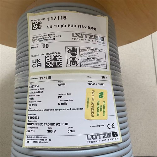 深圳歐德捷科技有限公司專業(yè)銷售LUETZE線纜117115(20M)SUTR(C)PUR(18X0,34) 全新原裝正品進(jìn)口,